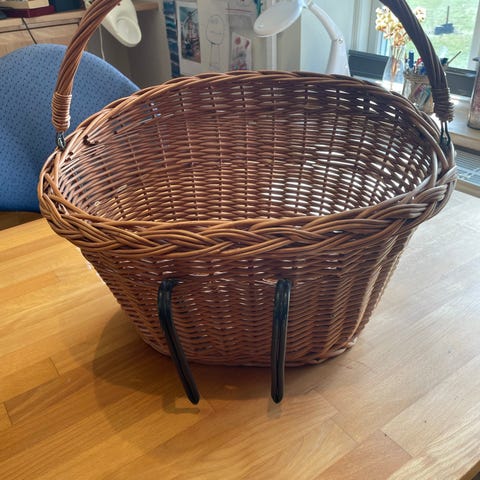 Cykelkurv, Børnekurv til styr, Fin og enkel lille kurv til styret foran på børnecyklen. L:24, B:17, D:12 cm