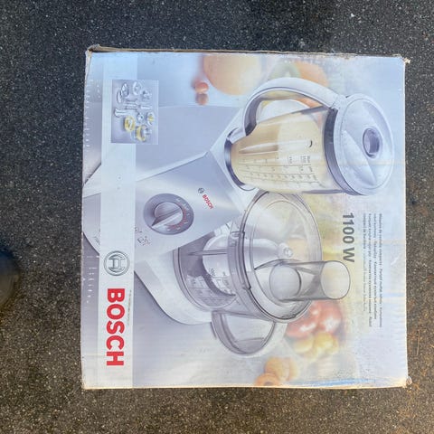 Køkkenmaskine, Bosch, Food processor MCM4100 Styline 800 W. Hvid udgået model. Kvittering haves ikke. Virker, aldrig brugt. Ny pris ca. kr. 1.000,00.