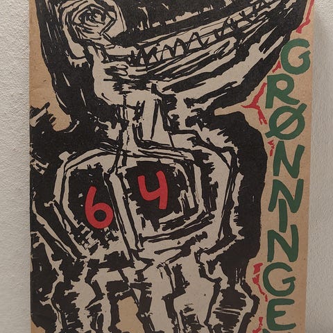 F. Rud Larsen: 12 / 71. Contraste 1971. Mappe med 12 linoleumstryk. Et af 200 nummererede eksemplarer. Hilsen fra kunstneren. Flot stand. Sender gerne.