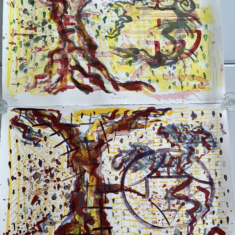 Litografi, Fed og farverig komposition af Claus Bojesen (f. 1948).