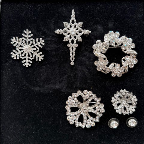 2 hårsløjfer og 3 plastronnåle