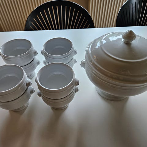 Porcelæn, suppeterrin med 4 portionsskåle, Pillivuyt