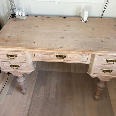 Skrivebord, b: 143 d: 79 h: 75, skrivebord med kilet kant