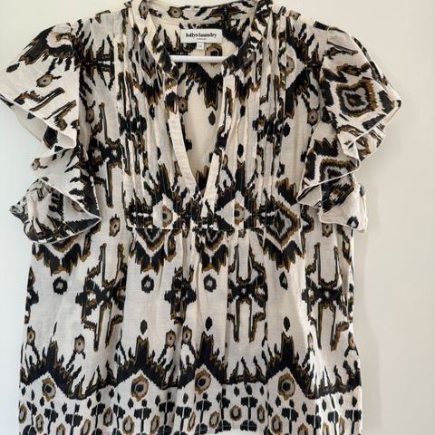 Top, Lollys Landry, str. 34, Mønstret , Bomuld , Ubrugt, SKØN top med korte ærmer og sød v-hals. Flot mønsteret. Er fra Lollys Laundry i str 34/xs.