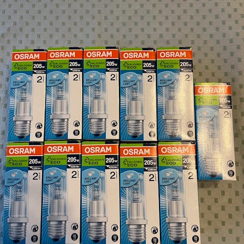 Pære, OSRAM HQL (MBF-U) DE LUXE, 2 stk på 80W, 2 stk på 125W, har siddet på Københavner lamper, samlet pris 100 kr.