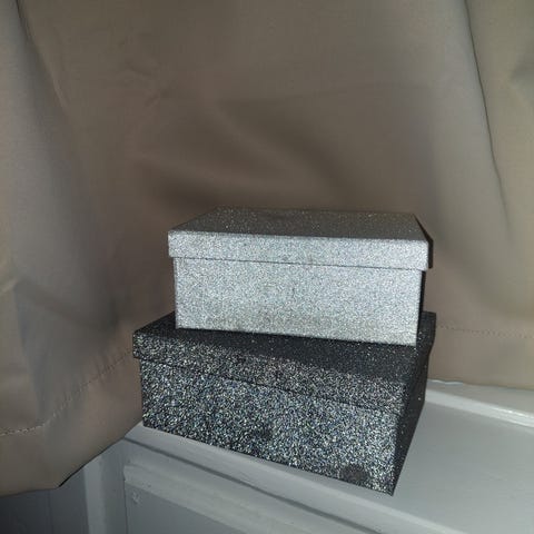 5 røde glimmeræsker fra Panduro. Helt nye og stadig i plastic. Se mål på billede.