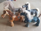 Keramik-hestofanter, Annemarie Aakjær Svendsen, motiv: hestofant, Fantask smukke, sjove, solide keramikfigurer, der af kunstneren kaldes Hestofanter, heste med elefantfødder, manke og hale i dejlige materialer. Str. 2 stk. ca. 18 x 16 cm - 2 stk. 15 x 13 cm. -Samleobjekter.