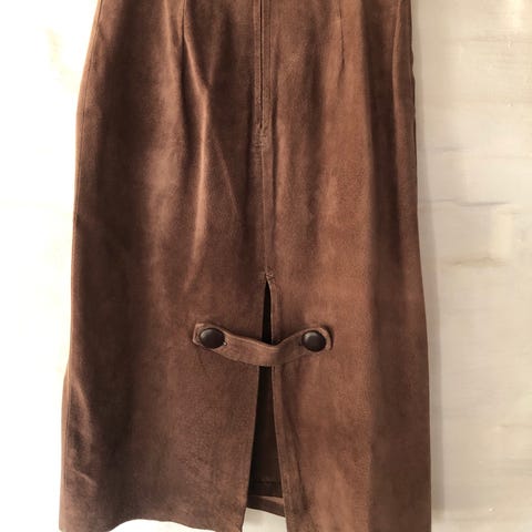 Ruskindsnederdel, str. 36, Soyaconcept, Sand, Ruskind, Ubrugt, Lækker nederdel i ægte ruskind med lynlås bagpå og to store lommer foran.