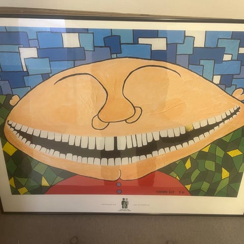 Kunsttryk, Thomas eje, motiv: Abstrakt, b: 60 h: 76, "Ræk mig lige farveladen, Kurt!"