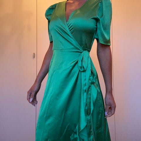 Virkelig smuk helt ny stribet slåom Kjole / Sommerkjole i str. 36. Materiale: 100 % viskose. Farve: blå / hvid. Talje mål på ryggen fra side til side ca. 40 cm. og forpå kan den jo reguleres - har bånd som skal bindes om på ryggen. Længde bagpå ca. 116 cm. og lidt kortere forpå. Se alle fotos. Må afhentes eller sendes forsikret med DAO + porto. Se gerne mine andre annoncer - mere kan købes med.
