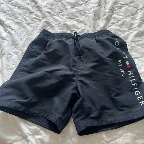 Badetøj, Badeshorts, Tommy Hilfiger, str. 158, Super fede badeshorts til den lille strandløve fra Tommy Hilfiger i rød/hvid/mørkeblå. Der er en baglomme på og bindebånd i livet med logo i enderne.