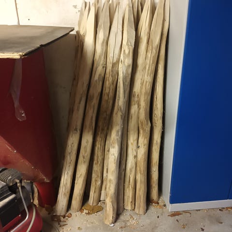 Stolper, Fyrtræ, Der er 12 stk Trykimprægnerede stolper til hegn af fyrretræ. Længde 2000 mm. Diameter 70 mm.