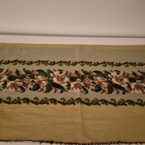 Dug, motiv: Hardanger brodderi, Vintage dug, lyseblå med Hardanger brodderi, fra 60’erne.