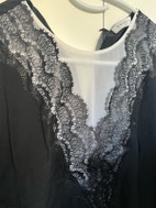 Top, Sandro, str. 36, Sort og hvid, Polyester, Næsten som ny, Kortærmet top i hvid og sort med blonder