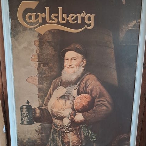 13 reklameskilte for Carlsberg. De er lavet i kraftig pap og nok beregnet til at skrive fx pris på. Skiltene er ens på begge sider. Brugsspor på enkelte af dem.