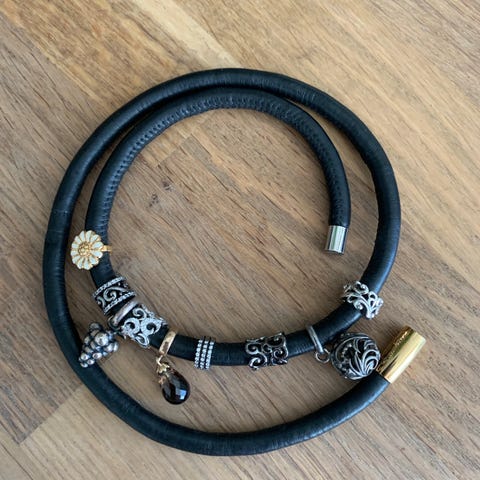 Armbånd, læder, Christina, HELT NYE læderarmbånd med charms.