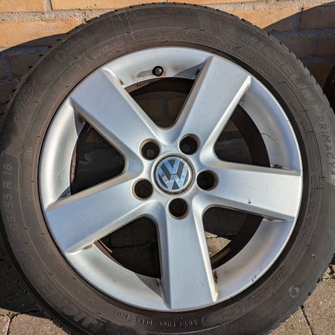 Alufælge, 16", VW R16, krydsmål 5, sommerdæk, Michelin, 6 mm mønster, fælge med dæk, Sælges grundet afskaffelse af bil. Brugt en sæson. Mange km tilbage!