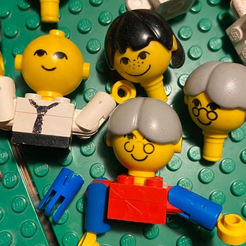 Homemaker Figure / Maxifigure Torso Assembly with Yellow Head with Black Eyes, Eyebrows, and Smile Pattern - 792c03 / 685px4 - 1970'erne - 10,- dkr pr. styk: