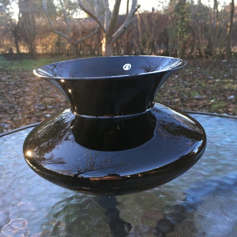 Rosendahl, Karen Blixen collection, Danish Living, sort vase, to skår oppe i kanten (se foto 4) - ellers fin stand, højde: 16 cm, diameter top: 17,5 cm, hul i midten: 9 cm.