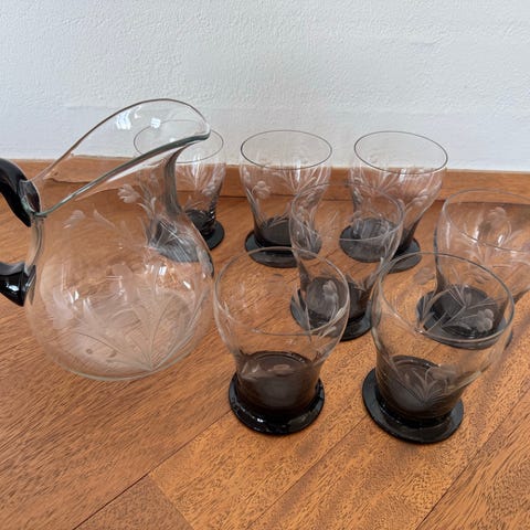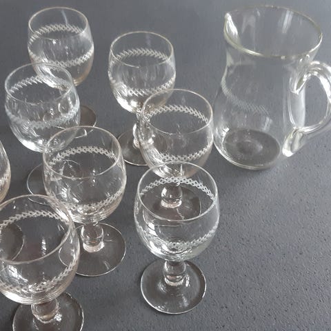 Sæt med kande og 6 små fine glas