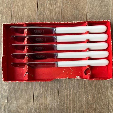 WMF Bistro 6 Knive Frokostknive / Morgenmadsknive med 2 skær, læ. 19 cm, rustfrit stål, Nye/Ubrugte stadig i plastposer og original æske, sælges pr. stk.. 75,-