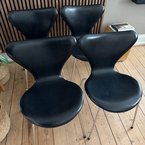 Spisebordsstol, Læder og stål, Fritz Hansen 6 stk.