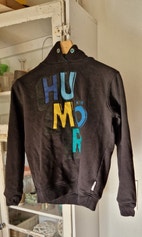 Hættetrøje, Humör, str. S, Sort, God men brugt, Humør hoodie med flot farverigt tryk på maven