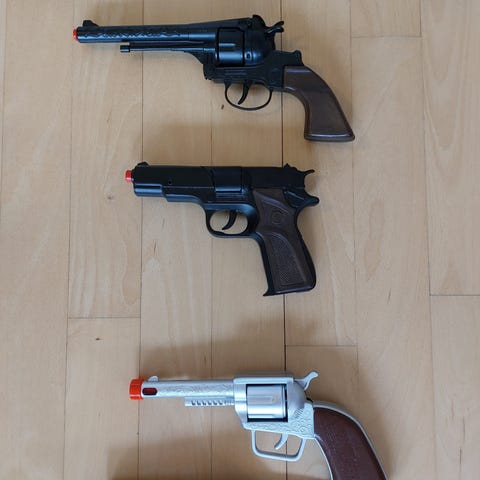 Diverse legetøjspistoler og tilbehør