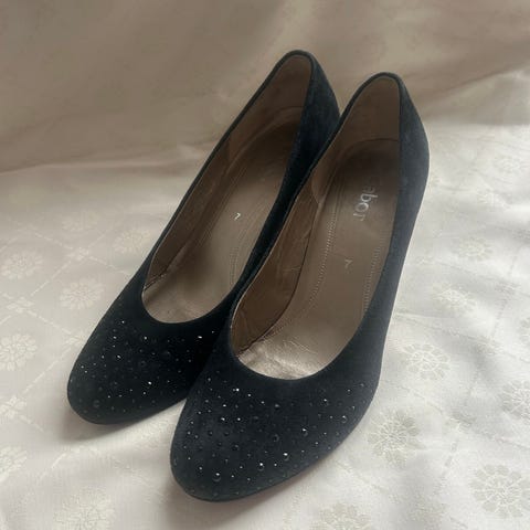 GABOR, BRUGT 2 GANGE, SORT, RUSKIND, FLOTTE GABOR STILETTER I RUSKIND, MED GUMMISÅLER, STR 8,5/42,5. BRUGT 2 GANGE, FEJLER INTET. PRISEN ER IKKE TIL FORHANDLING-BUD BESVARES IKKE. NB. ER VAREN AKTIV, ER VAREN TIL SALG. SENDER GERNE....SÆLGES IKKE SOM FIKS FÆRDIG, BETALING INDEN AFSENDELSE.