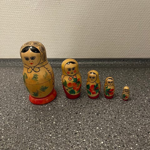 Smuk stor håndmalet babushka som består af 5 figurer. Flot detaljeret håndværk;