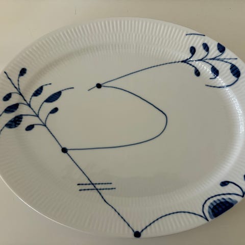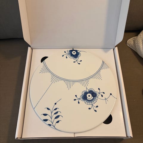 Porcelæn, kagefad med fod , Royal Copenhagen, Royal Copenhagen mega Riflet kagefad