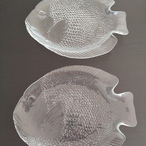 Glas, 3 glas fiskefade små, alle for 90kr
