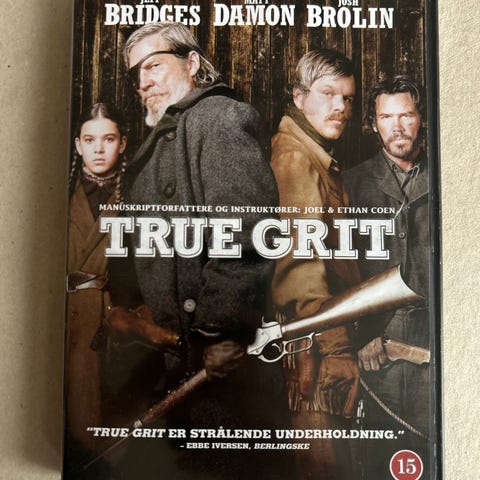 True Grit, instruktør Ethan & Joel Coen, DVD, western, Arkansas i 1870'erne. For halvtreds dollars hyrer den viljestærke 14-årige pige Mattie den legendariske og skydegale sherif Rooster Cogburn til at fange sin fars morder - død eller levende! Men også Texas-rangeren LaBoeuf er ude efter morderen.