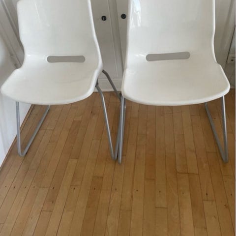 Køkkenstol, 25kr for 1 - sturdy n comfortable high chairs in white, good for _at_bar or at kitchen top; with a height of 66cm from seat to floor. Have 2 to sell.