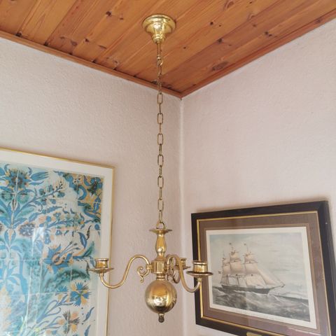 Anden loftslampe, Messing, 5 armet messing lysestage til at hænge i loftet. Kan sendes plus