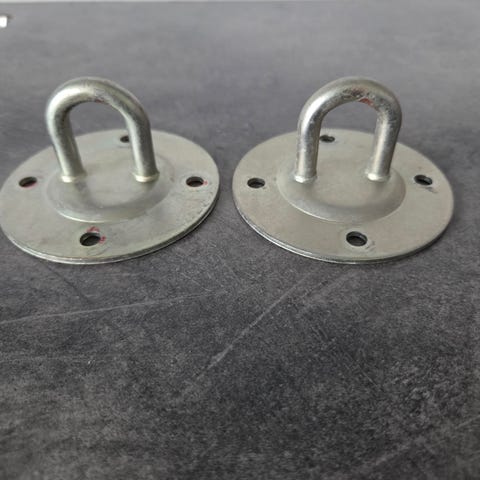 Andet, Gyngebeslag + reb, 2 helt nye gyngebeslag 90mm med tilhørende brugt reb der kan indstilles i højde. Der medfølger 2 ekstra ringe