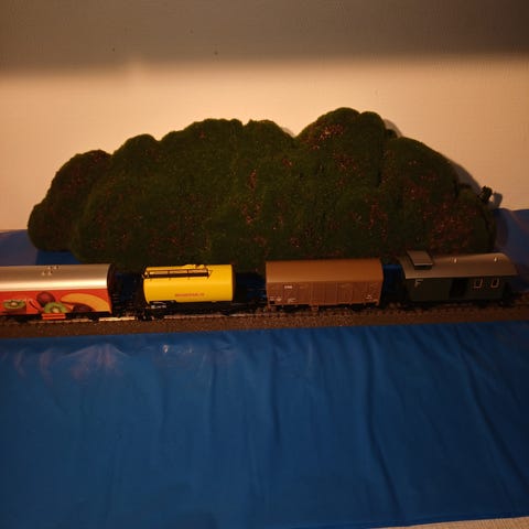 4 vogne til modeltoget, 2 Märklin kølevogne + 2 godsvogne, skala 1:87