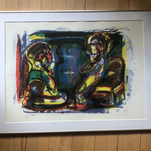 Litografi, Fantastisk og meget særegen farvelitografi, komposition ved Jens Peter Helge Hansen (f.1943).