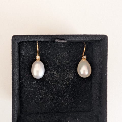 Øreringe, rødguld, Ghita Ring, De smukkeste ørehængere i guld med stor perle i rosa. Berber øreringe.