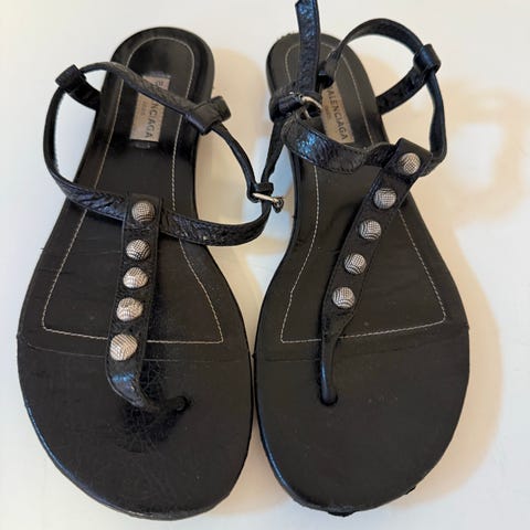 Sandaler, str. 38, Balenciaga , Sort med guld nitter, Læder, God men brugt, De er størrelsessvarende