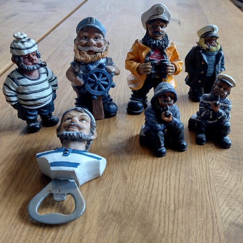 Andre samleobjekter, Sømand, 2 stk. skønne sømænd i hvad jeg tro er i kobber. De er 12 cm. høje, sælges for 75kr pr. stk.