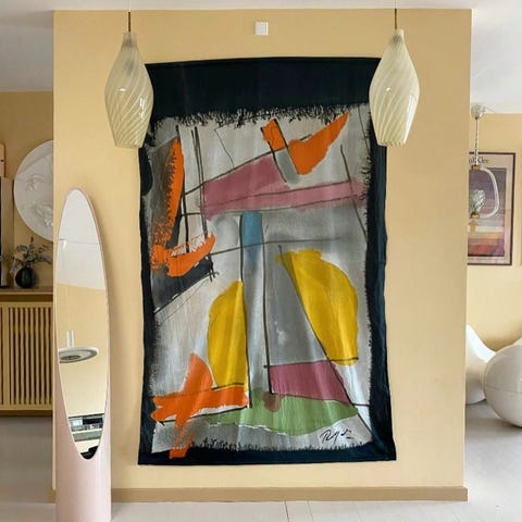 Pendlen fremstår meget velholdt med nyere stofledning og gylden Tom Dixon-loftbaldakin for at gennemføre looket.
