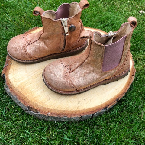 - Ankelstøvlerne har lynlås på siden, broque mønster og bløde rågummisåler.