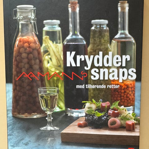 Aamanns Kryddersnaps, Kryddersnaps med tilhørende retter, Politikens Forlag, indbundet, som ny, sælges.