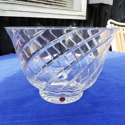 Håndlavet unika skål krystal, Kunsthåndværk luksus genbrug bæredygtighed, Stor krystal skål med orrefors top, til lys, slik. Visitkort, frugt eller blomster etc ses og afhentes I Hvidovre