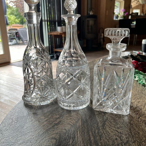 Andet, Krystal karaffel til barvognen, Krystal, Server for dine gæster med klassisk stil. En smuk karaffel ca. 35-40 cm høj. Ingen skår eller fejl og med en smuk prop til.