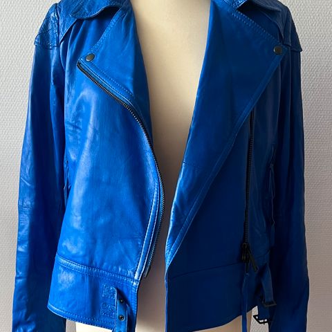 Skindjakke, str. 38, RENE LEZARD, sort LÆDER, læder skind, Læderjakke i str 38 med lækkert feminint lille detaljeret bælte sælges, skind jakke læder jakke frakke rene lezard sender gerne men køber betaler porto