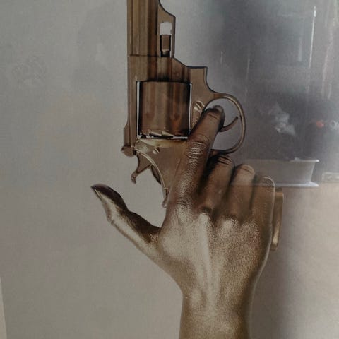 Plakat, motiv: Hånd med pistol i guld, b: 100 h: 70