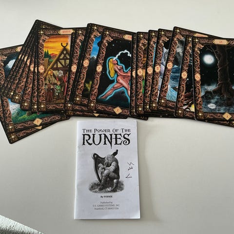Samlekort, Rune Oracle kort, 24 kort med flotte dyre motiver og runer. Oversigt over runernes betydning er med i pakken