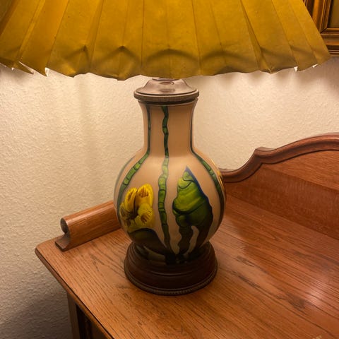 Bordlampe, Glas/træ, 120 år gl.